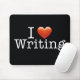 Ajoutez audacieux et style unique à votre bureau avec ceci "que j'aime écrire" le tapis de souris noir. Les caractéristiques de conception audacieuses, lettrage blanc sur un arrière - plan noir. Le symbole rouge lumineux de coeur ajoute une éclaboussure de couleur. En outre disponible dans le blanc.