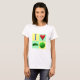 Ce T-shirt mignon de pickleball a "j'un logo aiment Pickleball" en couleurs de vert, de jaune, bleu et rouge. Vous pouvez changer la taille de la conception dans le menu de personnalisation. Fait un grand cadeau pour tous les joueurs de pickleball.