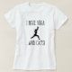 Grand T-shirt de regard de femmes de style de typographie avec la silhouette de femme faisant le yoga et mots "j'aime le yoga… et des chats" là-dessus. Perfectionnez pour tous les amants de yoga (et chat).