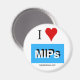 Aimant frigo design rond avec slogan "I love MIPs" et logo mipdatabase.com