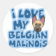 Incontournable des autocollants Malinois belges ! Sur le côté droit se trouve un dessin kawaii Malinois, avec une impression bleue extra grasse qui dit : "J'aime mon Malinois belge." Merchandise très mignonne Chien de Berger Belge pour amoureux de les chiens dans le style de dessin animé japonais kawaii. Nous offrons également ce design berger belge sur une magnifique collection d'autres produits, y compris des chemises.