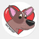 Cartoon Red Heeler autocollants avec le chien de bétail australien moucheté rouge qui sort sa tête d'un grand coeur. Un grand carré oculaire, un petit et une bande de blanc sont ses marques. Produits amoureux de les chiens mignons !