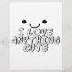 Un visage, des yeux et une bouche de style Kawaii. Texte et dessin en noir et blanc.
