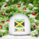 Le globe neigeux personnalisé présente le drapeau jamaïcain et le mot JAMAICA sous les couleurs du drapeau. Ci-dessus, en texte vert, est un endroit pour un nom. Cool offrant un étui ou un cadeau de chauffage pour un bar à la maison.