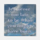 Sur une photo arrière - plan de ciel bleu et de nuages bouffants, un peu d'inspiration : "Il n'est jamais trop tard pour être ce que vous auriez pu être."