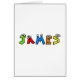 Drôle caractère de dessin animé avec les yeux de dessin qui épellent le nom des garçons JAMES. Trouvez d'autres noms dans cette série. Customisez facilement et choisissez votre propre couleur arrière - plan. Image disponible sur divers cadeaux et produits.
