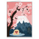 Dessin d'inspiration japonaise montrant le singe des neiges, les fleurs de cerisiers et le Mont Fuji.