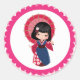 Motif comprennent Japonaise fille à kimono à la frontière rose pétoncle et rose Sakura arrière - plan. Merci pour filles japonaises graphisme par Mujka.