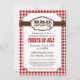 Une invitation pour une soirée barbecue. Pique-nique, barbecue, barbecue. Rouge et marron. à damiers et en vichy motif, pays rustique de l'ouest. Mariée ou wedding shower, barbecue de fête, fête d'anniversaire, etc.