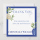 Célébrez votre jour spécial avec une élégance intemporelle en utilisant cette carte de remerciement "Jardin Enchanté Bleu". Avec un fond bleu riche orné de florales crème douces et de feuilles vertes luxuriantes, ce design allie un charme romantique à une sophistication classique. Parfait pour les mariages, les fêtes prénuptiales, les célébrations de fiançailles ou tout événement où une gratitude sincère mérite une belle présentation. Personnalisez avec vos noms et votre message pour créer un souvenir que vos invités chériront.