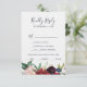 Cette carte RSVP de choix pour le menu bordeaux du jardin d'automne est parfaite pour un mariage de automne. Le design floral présente de superbes fleurs d'aquarelle rose, rouge, marine et bordeaux, des fleurs et des feuilles verts disposés dans un bouquet d'automne animé. Cette carte de réponse mariage demande aux clients quel repas ils souhaitent à la réception.