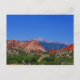 J'ai pris cette photo du jardin des dieux juste pendant deux jours avant que le feu de canyon de Waldo a commencé à Colorado Springs, le Colorado en juin de 2012. Les cieux étaient bleu calme, clair et cerulean. Le contraste du rouge bascule contre les plantes vertes, complétées avec le ciel bleu et les brochets font une pointe à l'arrière-plan créent une image renversante. La flore et la faune naturelles du paysage créent une photo saisissante avec la couleur vibrante pourtant naturelle. Si vous aimez cette image, jetez un coup d'oeil à d'autres produits dans mon magasin de Pictimilitude avec cette même image. Appareillez cette carte postale avec les timbres et les enveloppes assortis.