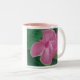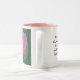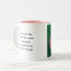 Mug avec l'image d'une fleur rose dessinée au crayon coloré et un verset inspirant.