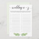 Combien de mots mariages connaissez-vous ? Jouez au Mariage A-Z avec ces magnifiques cartes de jeu de verdure. Le jeu est très facile à jouer. Remettez une feuille A-Z Mariage et un stylo à vos invités. Ils devront trouver des mots mariages qui commencent par chaque lettre de l'alphabet aussi vite qu'ils le peuvent. La première personne à obtenir tous les mots de A à Z gagne !