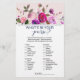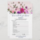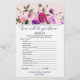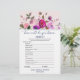 Ce jeu de jardin romantique "ce qui est dans votre sac à main" est parfait pour une douche nuptiale élégante. Le devant de la carte de jeu comporte "comment connaissez-vous bien la mariée", et le dos de la carte contient "ce qui est dans votre sac à main". L'aménagement comprend un bouquet d'aquarelle fleurie sur un arrière - plan rose pâle avec un texte bleu marine. Vous pouvez modifier la couleur de l'arrière - plan pour qu'elle corresponde à celle de votre mariage en cliquant sur le bouton "personnaliser". Personnalisez l'avant de la carte avec le nom de la date de la mariée et de la douche nuptiale.