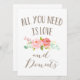 Ce dessin mignon et élégant présente de jolies fleurs aquarellées et dit "Tout ce dont vous avez besoin est l'amour et les cupcakes"