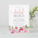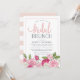 Élégante et moderne invitation au brunch à la nuptiale fleurie présente une bordure inférieure de roses en blanc, roux et rose fuchsia avec une verdure luxuriante à l'horizon. Personnalisez avec vos détails de brunch nuptial dans une typographie élégante bleu-gris et bleu-gris accentuée de calligraphie de style manuscrit. Cartes inversées pour des rayures blanches et roses rousses.
