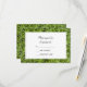 Customisez la carte de réponse RSVP de mariage de Jardin vert naturel avec votre date de réponse de mariage. Associez-vous aux invitations de mariage Green Grass, timbres de poste et étiquettes d'adresse de retour correspondantes pour créer un ensemble coordonné de papeterie nuptiale. Ces cartes décontractées d'été en extérieur mariage r.s.v.p. disposent d'une photo de nature rapprochée d'une pelouse verte.