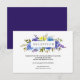 Conçu pour se coordonner avec notre collection de mariage Fleurs bleues et jaunes, cette élégante carte d'encart de réception botanique présente un cadre de fleurs peintes à l'aquarelle, de glycine et de jasmin jaune dans des tons élégants de jaune, de bleu et de lavande, surmontant le texte de votre message souhaité.