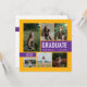 La carte de faire-part de remise de diplômes élégante et l'invitation de la fête comportent six photos senior avec "GRADUATE" comme grand point focal. Personnalisez le texte personnalisé moderne avec le nom de votre élève, l'école et l'année de classe. Cette carte recto verso comprend le libellé de l'invitation de la partie de graduation au verso. Customisez les couleurs du cadre d'image et des boîtes à l'avant et les boîtes à l'arrière pour correspondre aux couleurs de votre école ou coordonner avec la photographie. Disponible dans les combinaisons de couleurs les plus populaires et les plus courantes de l'école - vert/jaune, rouge/jaune, rouge/or, bleu/jaune, bleu/jaune, bleu/or, noir/or, noir/jaune, violet/jaune, rouge/argent et rouge/noir. Produits correspondants et autres couleurs disponibles.
