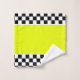 Serviette à thème de course, parfaite pour le bain de grotte homme, ou les magasins de course, décoration de drapeau noir et blanc à damiers, le jaune fluorescent clair peut être changée à n'importe quelle couleur pour correspondre à votre décor, équipe de course, ou couleur de magasin, ainsi que le blanc. Le texte peut être commuté en n'importe quel message, ou le texte peut être supprimé.