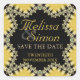 Design frais et audacieux dans des parures dorées vintages et jaunes satinées. Les thèmes de style seraient adaptés au moyen-orient, à l'indien, à la bohème, et tous ceux qui cherchent quelque chose de différent sauvent les autocollants de date. Annoncez votre événement spécial avec cet autocollant de mariage, de Fiançailles, d'anniversaire, de mariage élégant et unique. Tout le texte peut être entièrement customisé, y compris le style de police et de couleurs. Comme mes designs & Art ?