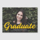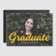 Aimant de graduation simple et élégant avec la photo horizontale du diplômé avec "Graduate" dans un script jaune gras. Personnalisez le faire-part de remise de diplômes photo en ajoutant le nom du diplômé, le nom de l'école et l'année de remise de diplômes.