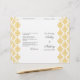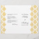 Le texte de ce programme mariage damassé jaune, gris et blanc est entièrement personnalisable. Il est destiné à être plié vers le milieu lorsque vous le recevez. Pour modifier le texte, utilisez l'option personnaliser. Pour les modifications plus étendues du texte, telles que les modifications de la police, de la couleur de la police, de la taille de la police ou de l'emplacement du texte, utilisez l'option personnaliser. De plus, une fois votre texte finalisé, si vous devez le déplacer un peu, vous pouvez le faire en utilisant l'option customiser. Ce programme d'occasion spéciale damassé jaune et gris est actuellement customisé comme un programme de mariage, mais il fonctionnerait bien comme un programme pour une célébration d'anniversaire (doux 16), wedding shower, ou peut-être une célébration de fin d'études secondaires aussi. Vraiment, cela ferait même un très beau bulletin d'église avec des changements au texte. Laissez votre imagination vous mener. Il est recommandé que ce soit acheté seulement comme une finition mate standard de 80lb. L'option papier 100lb est difficile à plier et n'est donc pas recommandée.
