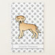 L'illustration originale de Destei d'un mignon chien de race Labrador Retriever en couleur jaune. Il y a aussi une zone de texte personnalisable pour un nom ou un titre. L'arrière - plan a un motif gris clair d'empreintes de pattes de chien.