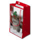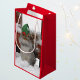 Cet écureuil enneigé avec un casquette elfe jaunâtre aimerait vous aider à envelopper votre don de chaleur et de fantaisie. Il peut faire froid dehors, mais sa créature boisée pourrait réchauffer le coeur d'un être cher. Les côtés du sac sont rouges.