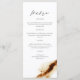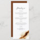 Ce menu comporte une aquarelle couleur orange brûlée en terre cuite et une police manuscrite pointue. Cette carte de menu est parfaite pour votre mariage bohème du désert, douche nuptiale, baby shower, ou tout autre événement spécial.