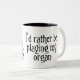 Une tasse avec une bande dessinée me montrant à la vue arrière d'un organiste jouant frénétique loin à l'organe avec la légende "jouerais plutôt mon organe" écrit à côté de l'arrière - plan et l'image et le texte blancs dans le noir.