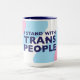 Montrez votre soutien à la communauté trans avec cette tasse en céramique avec le drapeau trans et le texte "Je me tiens avec Trans People". Ne laissez aucun doute dans l'esprit des gens où vous êtes.