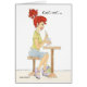 Fille aux cheveux rouges sirotant un soda dans une fontaine de soda.