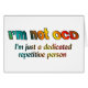Est-ce que vous avez ou savez quelqu'un avec des tendances obsessionnelles ? Êtes-vous un joint de main, ou nettoyez le phénomène ? Rendez léger et ayez l'amusement avec lui ! "Je ne suis pas OCD que je suis juste une personne répétitive consacrée" un hilare reformule du désordre obsessionnel dans les lettres colorées de gradient ! Rien mal avec être consacré à ce que vous faites ! Grande idée de cadeau !