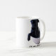 Un peu de carlin noir dans une tasse avec la description "je prendrai les miens noirs" le long du fond