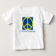 Ce T-shirt porte le symbole de la Paix, avec les couleurs du drapeau ukrainien. Le texte dit "JE SUIS AVEC L'UKRAINE."