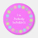 Aimant rose rond avec de jolies fleurs de dessins animés et les mots "Je suis parfaitement ImPeRfeCt". Les couleurs et le texte Arrière - plans sont personnalisables - des charges de polices et de couleurs à choisir. Visitez mon magasin Sober Princess pour des cadeaux uniques et amusants pour les personnes en rétablissement de l'alcoolisme et de la toxicomanie (et leurs chiens!) - et des cadeaux avec des messages spirituels/inspirants. Toutes les illustrations créées par un alcoolique en récupération.