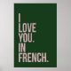 Je T'Aime. En Poster Français, I Love You Wall Art, I Love You Poster, I Love You print, love poster,