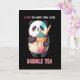 Un adorable ours panda tenant une grande tasse de thé au lait aux perles de boba a un message mignon pour quelqu'un de spécial à la Saint-Valentin ou n'importe quel jour où vous ressentez l'amour. Le texte noir et rose dit, Je t'aime plus que le bubble tea. Le texte à l'intérieur dit, et c'est beaucoup ! Personnalisez le texte à l'intérieur en l'ajoutant, en le modifiant ou en le supprimant pour un design personnalisé pour quelqu'un que vous connaissez qui aime les ours pandas kawaii et le bubble tea.