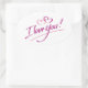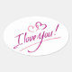 Ce mignon autocollant ovale qui dit "Je t'aime" avec deux coeurs de couleur rose sur un arrière - plan blanc est parfait pour embellir les cadeaux de la Saint-Valentin, albums photo et plus pour un charme romantique.