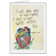 Petit oiseau mauve assis en haut à droite d'un coeur humain, avec des vignes vertes poussant en dessous. Fait en aquarelles.