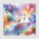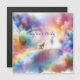 Illustration de l'aquarelle Je vais vous rencontrer au Rainbow Bridge. Une scène fantasque et onirique représentant un Rainbow Bridge coloré et éthérée qui s'étend à travers un paysage fantastique rempli de nuages doux et tourbillonnants dans des teintes vibrantes de bleu, rose et jaune. L'atmosphère est sereine et magique, évoquant un sentiment d'émerveillement et de tranquillité, entourée d'étoiles chatoyantes et de sentiers lumineux qui rehaussent l'atmosphère enchanteresse de la scène.