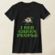 Les caractéristiques de conception du jour de ce St Patrick mignon un lutin petit ont habillé tous en vert et la légende "je vois les personnes vertes" en grand texte vert.