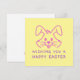 Envoyez des voeux de Pâques chauds avec cette carte de voeux de charme! Doté d'une tête de lapin illustrée et du message sincère "Vous souhaite une Pâques heureuse", cette carte est parfaite pour répandre la joie à vos amis, votre famille et vos proches. Une façon douce et réfléchie de célébrer la fête !