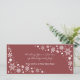 La Carte Plat Wishing You a Season of Beauty and Joy est un moyen parfait d'envoyer des voeux de vacances personnalisés à vos clients appréciés. Dans le cadre de la collection Smoky Topaz Hair Salon Biz Cards & Marketing Items, cette carte présente d’élégants flocons de neige étoilés sur le devant de la maison, sur un fond bordeaux et riche, ce qui améliore l’image de marque de votre salon. Le dos offre de l'espace pour un nom manuscrit, ajoutant une touche personnelle à votre message de vacances. Ci-dessous, une note de remerciement chaleureuse mène à une petite icône de ciseaux et de ruban, symbolisant un cadeau spécial de votre salon. Sous le nom de votre salon, il y a de la place pour votre numéro de téléphone, votre site Web et vos coordonnées. Le long de la bordure inférieure, la carte invitation les clients à "Stay Stylish - Follow Us!" avec des icônes de médias sociaux et la poignée de votre salon de conclure la salutation festive. Pour plus d'inspiration en matière de personnalisation ou d'aide à la personnalisation, visitez le site www.KBMD3signs.com ou contactez-nous à info@KBMD3signs.com pour obtenir des renseignements sur le design personnalisé.