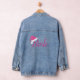 Cette veste de denim de vacances amusante est accentuée avec Bride écrit en rose vif, portant un chapeau de Santa rose mignon, le rendant parfait pour la saison de vacances.
