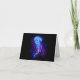 Grande méduse bleue, artistiquement dessinée, brillante, brillante, avec de longues tentacules sur arrière - plan noir avec bioluminescence violette. Méduse brillante.