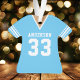 Célébrez votre vedette de football avec ce maillot de football bleu personnalisé. Parfait pour commémorer une saison spéciale, un joueur ou une équipe. Customisez-le avec un nom et un numéro pour créer une conservation unique.