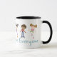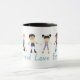 Les enfants de différentes couleurs viennent ensemble sur cette tasse avec les mots "Jésus ont dit l'amour chacun." Dans cette version les enfants n'ont aucun visage pour souligner des différences ethniques.